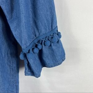 ANTHROPOLOGIE Hester & Orchard Peasant Style Chambray Pom Pom Top - Medium