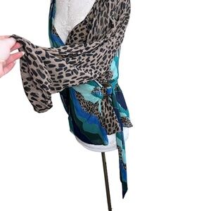 ANTHROPOLOGIE | Hutch Long Sleeve Wrap Top Mixed Print Oli Blouse Cheetah
