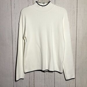 ANTHROPOLOGIE IVANNA LIZZIE MOCK NECK Black TRIM WHITE SWEATER TOP Size SMALL