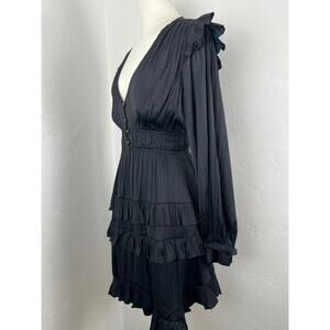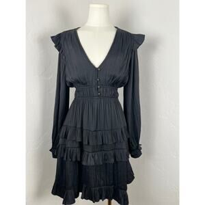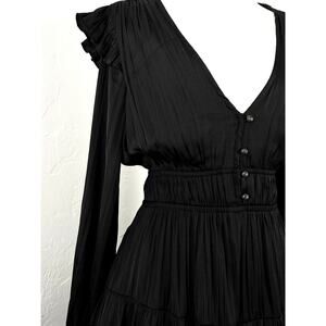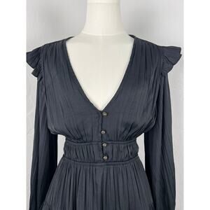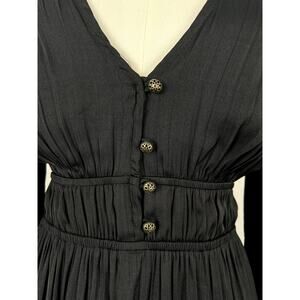 ANTHROPOLOGIE Ink-Black Silky Ruffled Goth Midi Dress Womens: Small