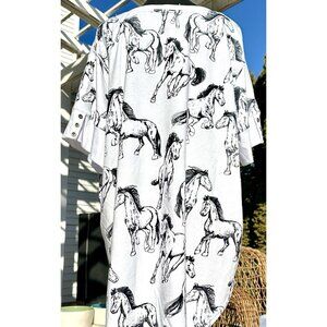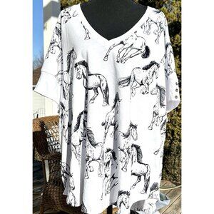 ANTHROPOLOGIE JANE & DELANCEY Wild Horses V-Neck Top Women’s 2X Plus Blk/White