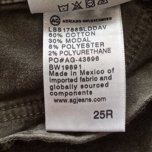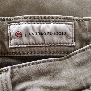 A pair of Anthropologie 5 pocket jeans in size 25R. Color: Vintage Green. Waist is 28 inches. Inseam is 28 inches. Nice condition!