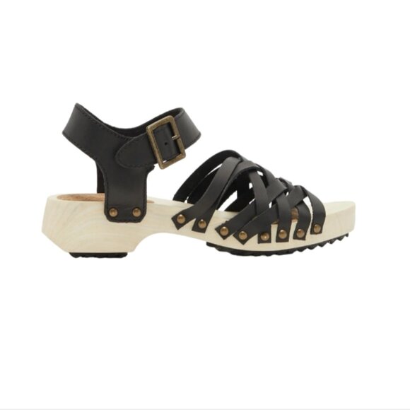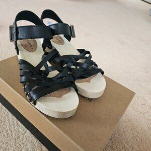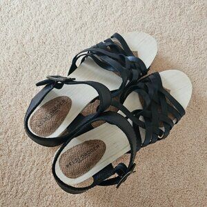 Lovely Wooden Base ANTHROPOLOGIE Kelsi Dagger Brooklyn Grain Ankle Strap Leather and Wooded Sandals great for summer and spring