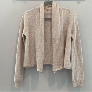 ANTHROPOLOGIE | Knitted & Knotted Cardigan Y2K Cropped Open Pink Sparkle XS