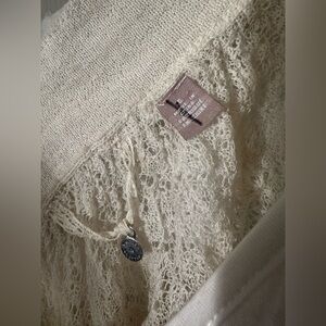 ANTHROPOLOGIE Knitted & Knotted SM 2 PIECE Cille Pullover Beaded Silver Lace Top