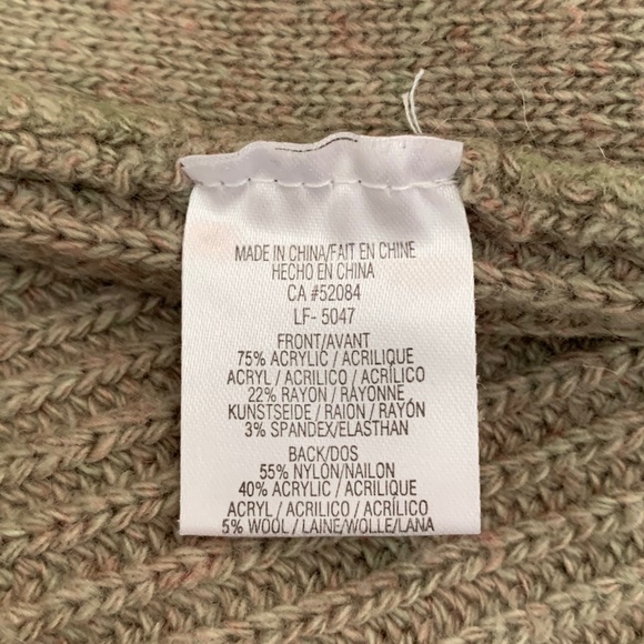 - Front: 75% acrylic, 22% rayon, 3% spandex