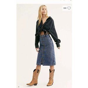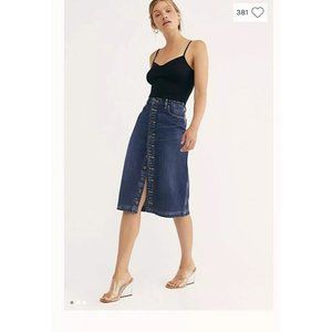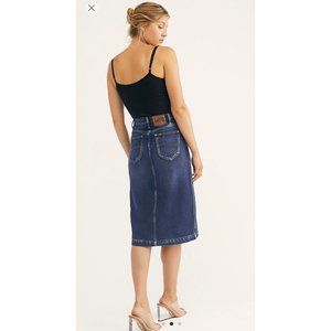 ANTHROPOLOGIE LEE denim High Rise Midi Jean Denim skirt Kansas Blue Sz 25 NWT
