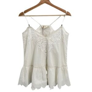 ANTHROPOLOGIE LETMEBE Embroidered Eyelet Lace Trim Cami Peplum Top White Size 2