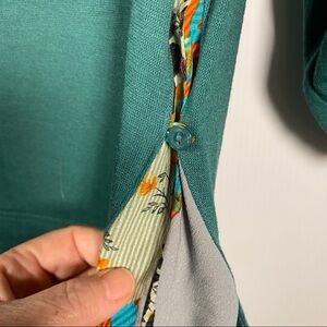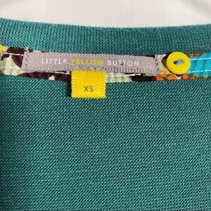 ANTHROPOLOGIE LITTLE YELLOW BUTTON Top. 3/4 roll up sleeves, side button Top is Polyester, Rayon and Spandex. Top is a soft knit and the flair at the bottom is Rayon. Very cute. Excellent Used Condition. Size XS