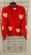 Elevate your style with this chic red cardigan featuring delightful pink heart patterns. Perfect for adding a touch of warmth and charm to any outfit.