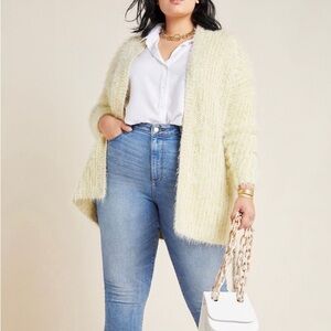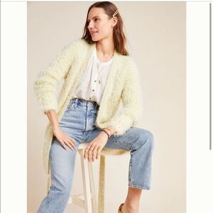 ANTHROPOLOGIE Larkin Yellow Shimmer Metallic Thread Eyelash Cardigan