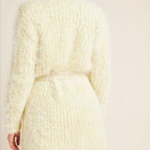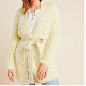 ANTHROPOLOGIE Fuzzy Belted Yellow Metallic Thread Cardigan