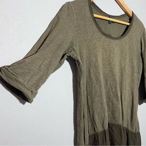 ANTHROPOLOGIE Left of Center Boho Tunic Top Size M Scoop Neck Hi-Lo Olive Green