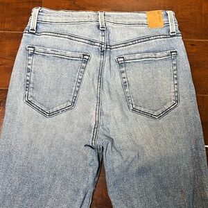 Midrise waist, ripped denim. Excellent pre-owned condition, no flaws.
