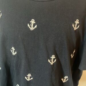 ANTHROPOLOGIE Lili’s Closet Blue Anchor Embroidered T-Shirt
