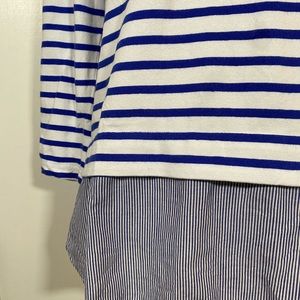 ANTHROPOLOGIE Lilis Closet white blue striped mock layer top size XS like new