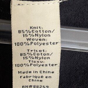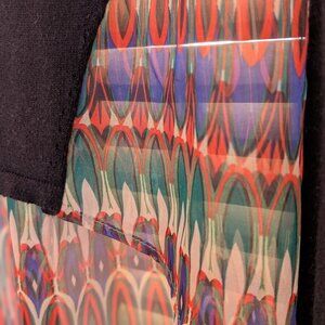 Lightweight black cotton blend knit with colorful patterned sheer polyester back