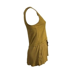 Anthropologie Little Yellow Button henley tank top in olive green with fluttery linen feel bottom half. 100% cotton with open keyhole upper back.