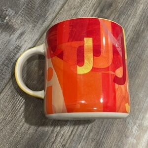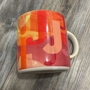 ANTHROPOLOGIE Lottie Red, Orange and Yellow Monogrammed "J" Initialed Mug