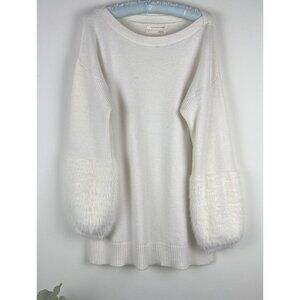 ANTHROPOLOGIE | M | Colma Tunic White Balloon Sleeve Soft Knit Sweater