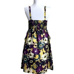 ANTHROPOLOGIE MAEVE 100% Silk Smocked Babydoll Floral Sleeveless Mini Dress SZ S