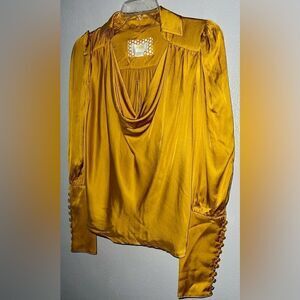 BEAUTIFUL RICH AND SILKY LOOKING PULL OVER MUSTARD YELLOW WITH VICTORIAN STYLE PUFF SLEEVES