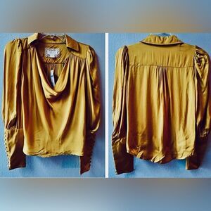 ANTHROPOLOGIE MAEVE COWL NECK BLOUSE DARK YELLOW SIZE XXS NWT