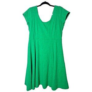 ANTHROPOLOGIE MAEVE GREEN FIT & FLARE NOVA TEXTURED DRESS SZ L NWT SHORT SLEEVE