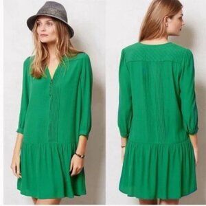 ANTHROPOLOGIE MAEVE Galina Green Drop Waist Dress with Pockets