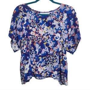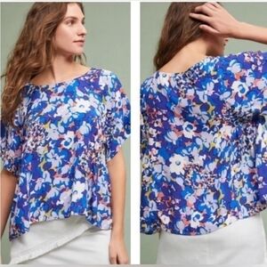 ANTHROPOLOGIE MAEVE MILLA BLUE FLORAL TOP SIZE SMALL