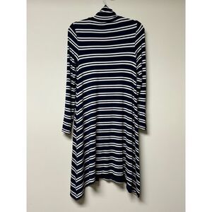 ANTHROPOLOGIE MAEVE Navy/White Striped Jersey Turtleneck Handkerchief Hem