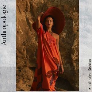 ANTHROPOLOGIE MAEVE ONE SHOULDER EMBROIDERED MAXI DRESS ORANGE SIZE 3X