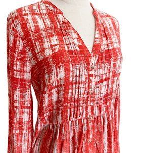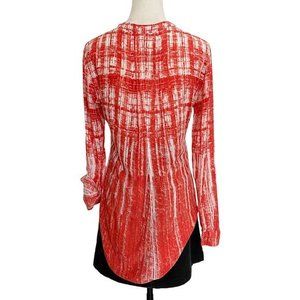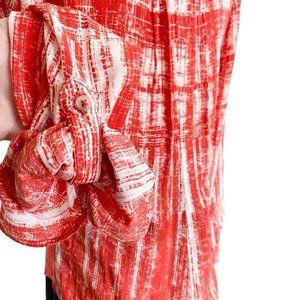 ANTHROPOLOGIE MAEVE Orange White Calia Button Down Flowy Boho Tuxedo Front Blouse Shirt Sz 4