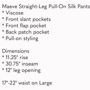 ANTHROPOLOGIE MAEVE STRAIGHT LEGGED PULL-ON SILK PANTS NWT sz XL