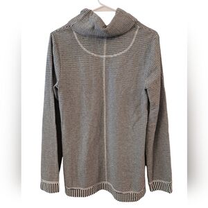 Pre-owned. Very good condition. Black and white stripes. Cowl neck. Triangle accents on sides. Size medium. Very soft.