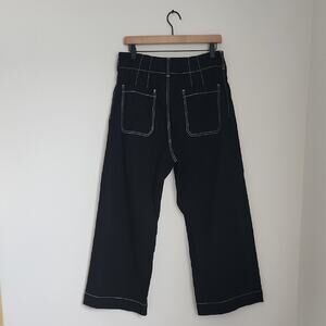 ANTHROPOLOGIE MAEVE The Colette Contrast Stitch Cropped Wide Leg Pants 32 Black