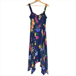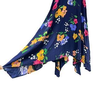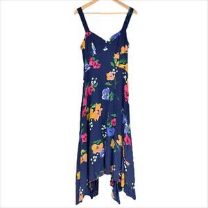 ANTHROPOLOGIE MAEVE Vivienne Maxi Handkerchief Dress in Navy Blue Floral Size12