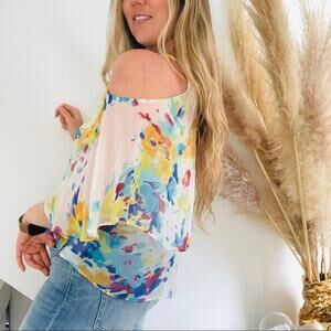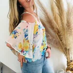 ANTHROPOLOGIE MAEVE White Floral Silk Cold Shoulder Tank Blouse Top Shirt Small