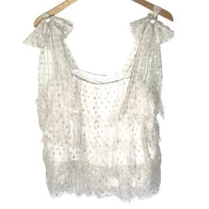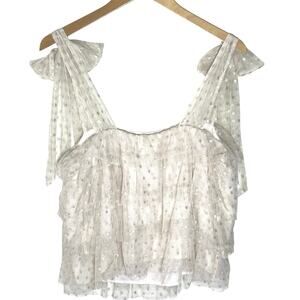 ANTHROPOLOGIE MAEVE Women’s Polka Dot Tulle Tiered Ruffle Tie Top