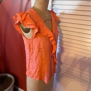 ANTHROPOLOGIE | MAEVE | coral sleeveless ruffle blouse silk 2