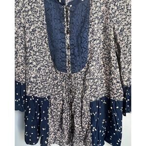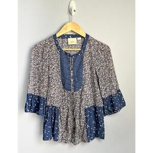 ANTHROPOLOGIE MAEVE sz 0 Hiver peasant blouse in blue motif EUC