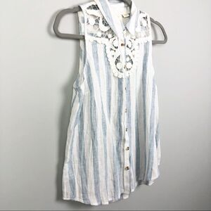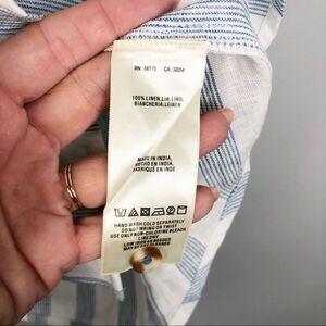 Such a pretty top!! Perfect for the upcoming seasons. Blue and white stripes with gorgeous knit accent at the top. Button down. 100% Linen. Great preowned condition! Size XSmall.
