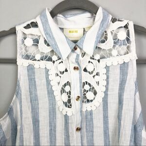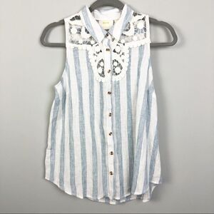 ANTHROPOLOGIE | MAEVE Blue White Striped Crochet Trim Top Women’s Size X-Small
