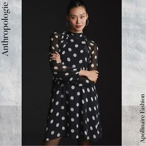 ANTHROPOLOGIE MAEVE POLKA DOT MINI DRESS IN BLACK AND WHITE SIZE XS NWOT