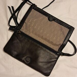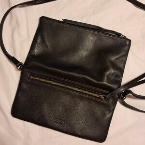 ANTHROPOLOGIE MARGOT BLACK LEATHER FOLDOVER CROSSBODY BAG