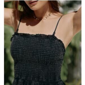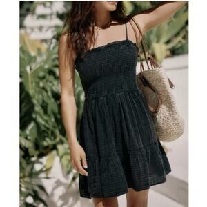 ANTHROPOLOGIE MARISOL GAUZE SQUARE NECK SMOCKED STRAPLESS MINI DRESS BLACK MED