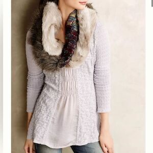 ANTHROPOLOGIE MEADOW RUE Arianell Smocked Long Sleeve Peasant Top Lavender Med