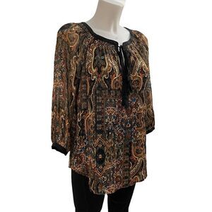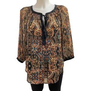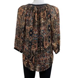ANTHROPOLOGIE MEADOW RUE BLACK CHIFFON PAISLEY PEASANT BLOUSE LINED SZ small