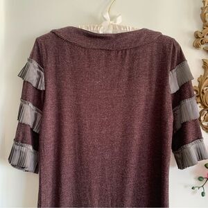 ANTHROPOLOGIE Theme Mini Dress Large Brown Wine Pleated
