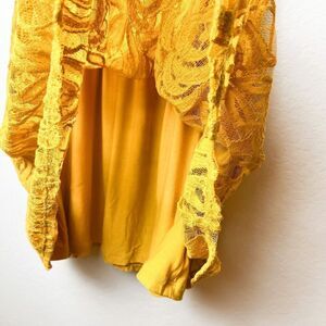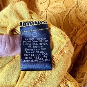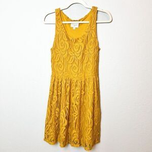 ANTHROPOLOGIE MOULINETTE SOEURS Lace Overlay Summer Dress Size Small in mustard color. Wide scoop neck, beautiful lace, gorgeous shape, fully lined, has pockets.This is in excellent pre owned condition.